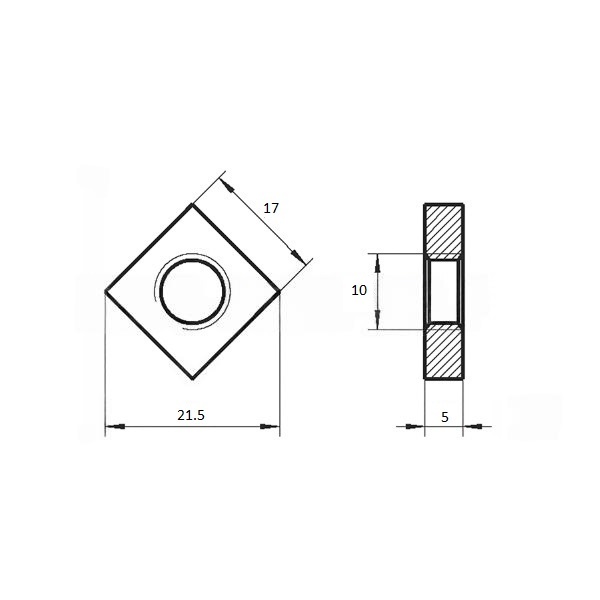 Гайка квадратная низкая ДИН 562 нержавеющая сталь А2 (AISI 304) M 10 в упак 200 шт. Гайка DIN 562 квадратная плоская. Гайка квадратная низкая DIN 562 — это крепёжное изделие, используемое в машиностроении, станкостроении и приборостроении. Она имеет квадратное сечение и низкую высоту, что позволяет устанавливать её в заранее подготовленный паз соответствующего размера. Это предотвращает прокручивание гайки и обеспечивает надёжное соединение деталей. Основные характеристики гайки квадратной низкой DIN 562: Метрическая резьба: размеры гаек соответствуют стандарту DIN 562 и варьируются от М1,6 до М10. Ширина стороны: от 3,2 до 16 мм. Высота: от 1 до 5 мм. Материал изготовления: нержавеющая сталь А2. Гайка используется в качестве закладной детали и устанавливается в паз, соответствующий её размерам. Благодаря своей форме и особенностям монтажа, она не прокручивается, но может перемещаться вдоль резьбы. Это позволяет использовать гайку в различных отраслях промышленности, где требуется надёжное и долговечное соединение деталей.
