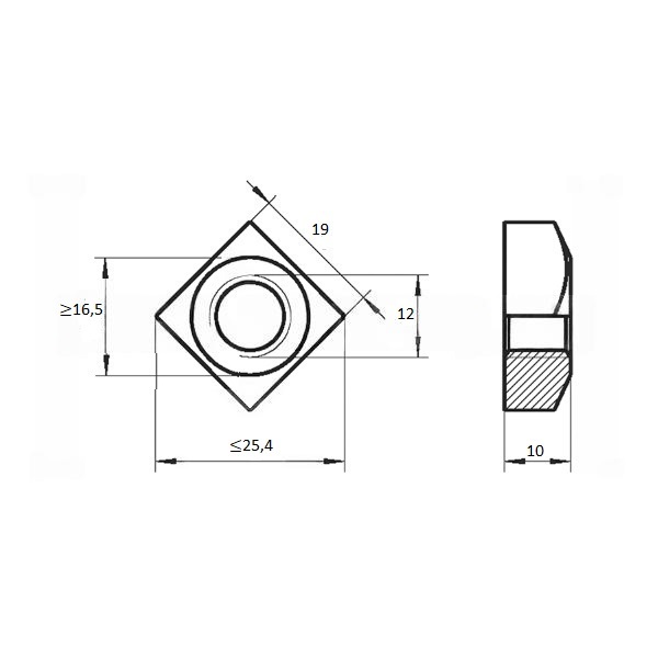 Гайка квадратная с фаской ДИН 557 нержавеющая сталь А2 (AISI 304)-70 M 12 в упак 100 шт. Гайка DIN 557 квадратная с фаской. Квадратная гайка с фаской DIN 557 из нержавеющей стали — это крепёжное изделие, которое используется в различных отраслях промышленности. Она имеет четырёхгранную форму и внутреннюю резьбу, что обеспечивает надёжное соединение деталей. Особенности гайки DIN 557: Материал: гайки изготавливаются из аустенитной стали марок А2 и А4, которые не подвержены коррозии и намагничиванию. Диаметр: гайки доступны в диаметрах от M5 до М16 с высотой от 4 мм до 13 мм. Фаска: наличие фаски на гайке обеспечивает более надёжное крепление и предотвращает прокручивание. Гайки используются в машиностроении, фармацевтической, пищевой и химической промышленности. Они применяются для создания разъёмных соединений между деталями, такими как болты, шпильки и винты. Квадратная гайка с фаской DIN 557 из нержавеющей стали является надёжным и долговечным крепёжным элементом, который широко применяется в различных отраслях промышленности.