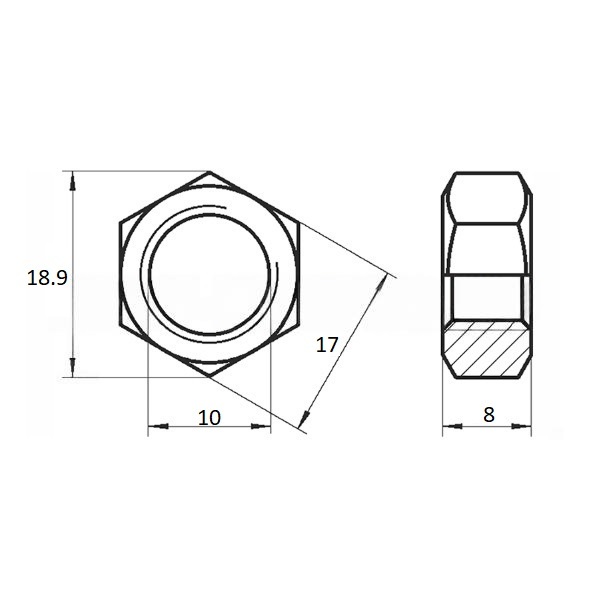 Гайка шестигранная ДИН 934 нержавеющая сталь А2 (AISI 304)-70 M 10 в упак 100 шт. Гайка DIN 934 обычная шестигранная. Стандарты аналоги: ГОСТ ISO 4032-2014; ГОСТ 5915-70; ГОСТ 5927-70; ISO 4032. Гайка шестигранная обычная DIN 934 из нержавеющей стали является одним из самых распространённых видов крепежа в различных отраслях промышленности и строительства. Она обладает рядом преимуществ, таких как высокая прочность, коррозионная стойкость и универсальность. Характеристики: Форма: шестигранная. Стандарт: DIN 934. Материал: нержавеющая сталь марок A2, A4. Размеры: широкий диапазон диаметров резьбы от M3 до M68. Высокая прочность: нержавеющая сталь обеспечивает высокую механическую прочность и устойчивость к деформациям.