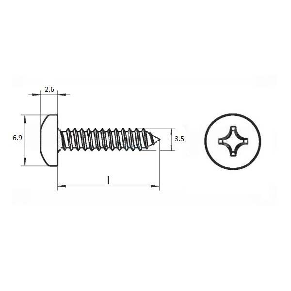 Саморез с полукруглой головкой острый, шлиц крест ДИН 7981 нержавеющая сталь А2 (AISI 304) C 3,5х50 PH в упак 100 шт. Саморез DIN 7981 нержавеющий — это крепёжное изделие с полукруглой головкой и острой резьбой. Саморез применяется для соединения тонких стальных листов, листового алюминия и других материалов. Он вкручивается в мягкие металлы без предварительного сверления. Саморез с полукруглой головкой и острым концом, оснащённый крестообразным шлицем ДИН 7981, изготовлен из нержавеющей стали, что обеспечивает ему высокую коррозионную стойкость и долговечность.