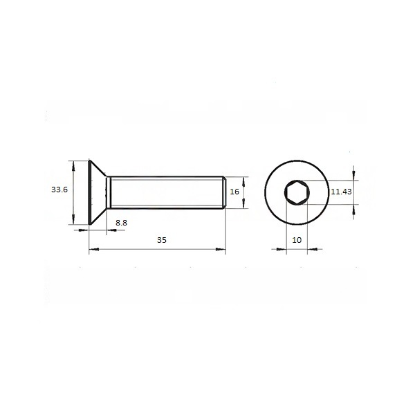 Винт ИСО 10642 [ДИН 7991] нержавеющая сталь А2 (AISI 304) M 16х35 в упак 25 шт с потайной головкой, внутренний шестигранник. Стандарты аналоги: ГОСТ Р ИСО 10642-2012; DIN 7991. Винт нержавеющий DIN 7991 — это крепёжный элемент с потайной головкой и внутренним шестигранником под ключ. Он изготавливается из нержавеющей стали А2 (1.4301 AISI 304) или А4 (1.4401 AISI 316). Применяется в машиностроении, приборостроении и строительстве для создания надёжных соединений, устойчивых к эксплуатационным нагрузкам.