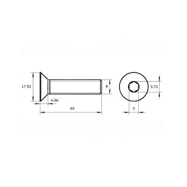 Винт ИСО 10642 [ДИН 7991] нержавеющая сталь А2 (AISI 304) M 8х65 в упак 100 шт с потайной головкой, внутренний шестигранник. Стандарты аналоги: ГОСТ Р ИСО 10642-2012; DIN 7991. Винт нержавеющий DIN 7991 — это крепёжный элемент с потайной головкой и внутренним шестигранником под ключ. Он изготавливается из нержавеющей стали А2 (1.4301 AISI 304) или А4 (1.4401 AISI 316). Применяется в машиностроении, приборостроении и строительстве для создания надёжных соединений, устойчивых к эксплуатационным нагрузкам.